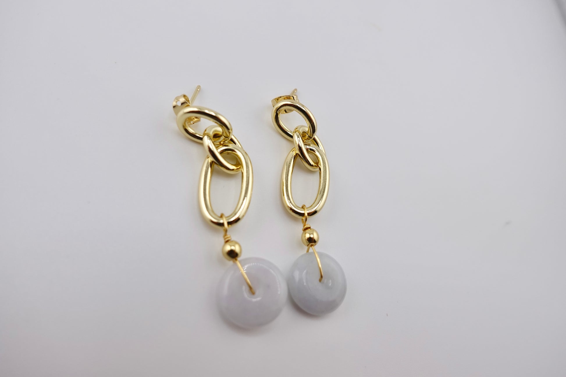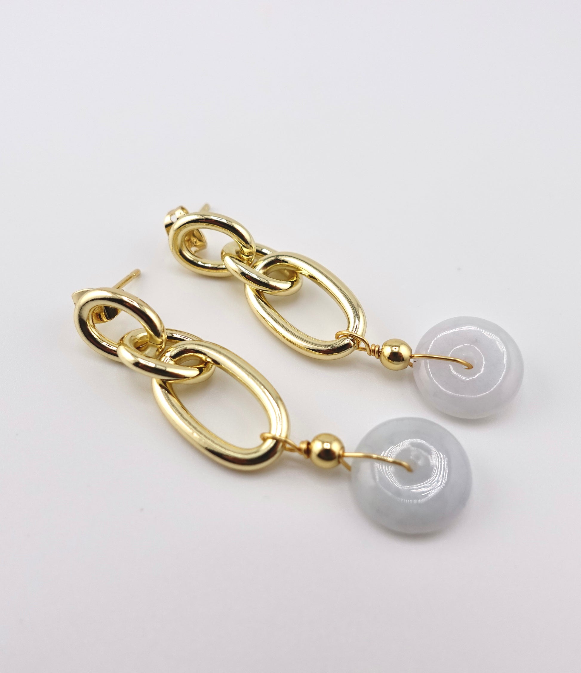 Finished with gold-filled hardware for lasting shine and durability, these earrings are lightweight enough for everyday wear yet bold enough to make a statement. Each jade piece carries natural variations in tone and marbling, making every pair uniquely one of one.