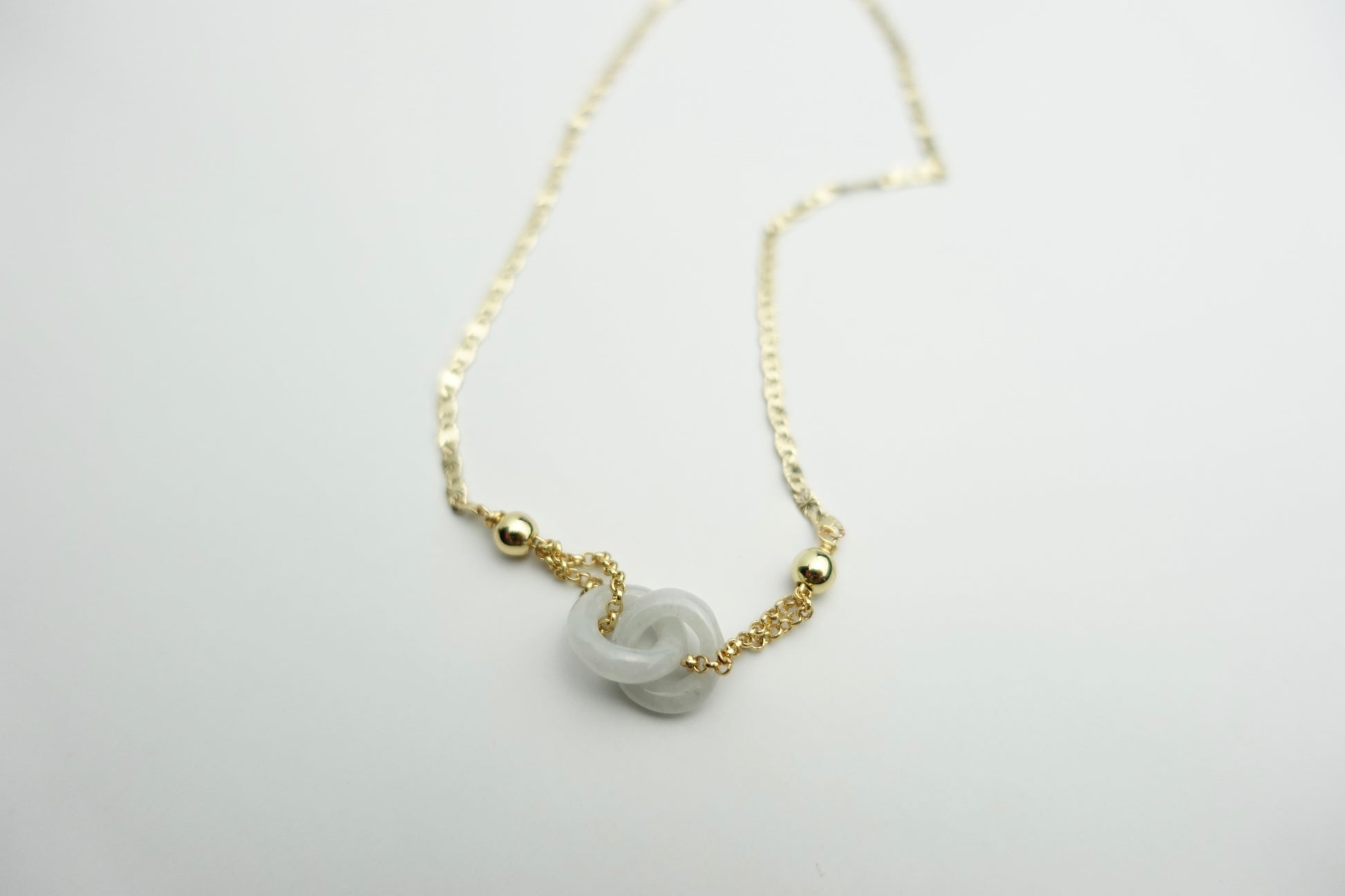 Elevate your everyday with our White Jade Interlinked Necklace, a modern symbol of connection and understated luxury. Hand-carved white jade links create a smooth, luminous finish that catches soft light beautifully, paired with gold-filled details for a lasting, tarnish-resistant shine. This neutral statement piece layers effortlessly with your other Ashore favorites and brings a fresh, coastal elegance to any look.
