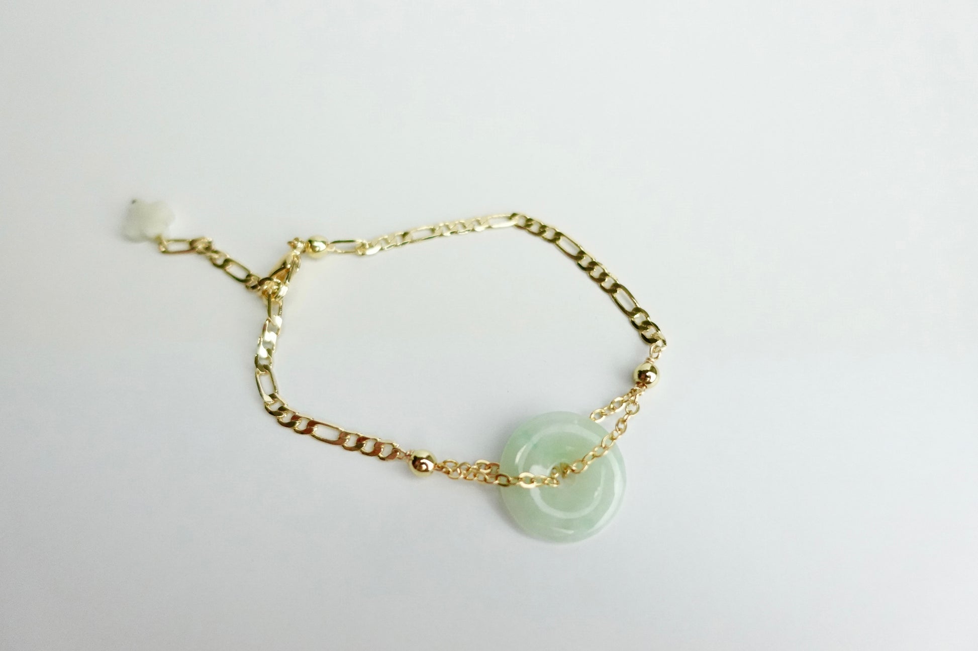 Jade donut bracelet featuring a polished jade circle on a gold-filled chain. Minimal, timeless, and designed for everyday wear and effortless layering.