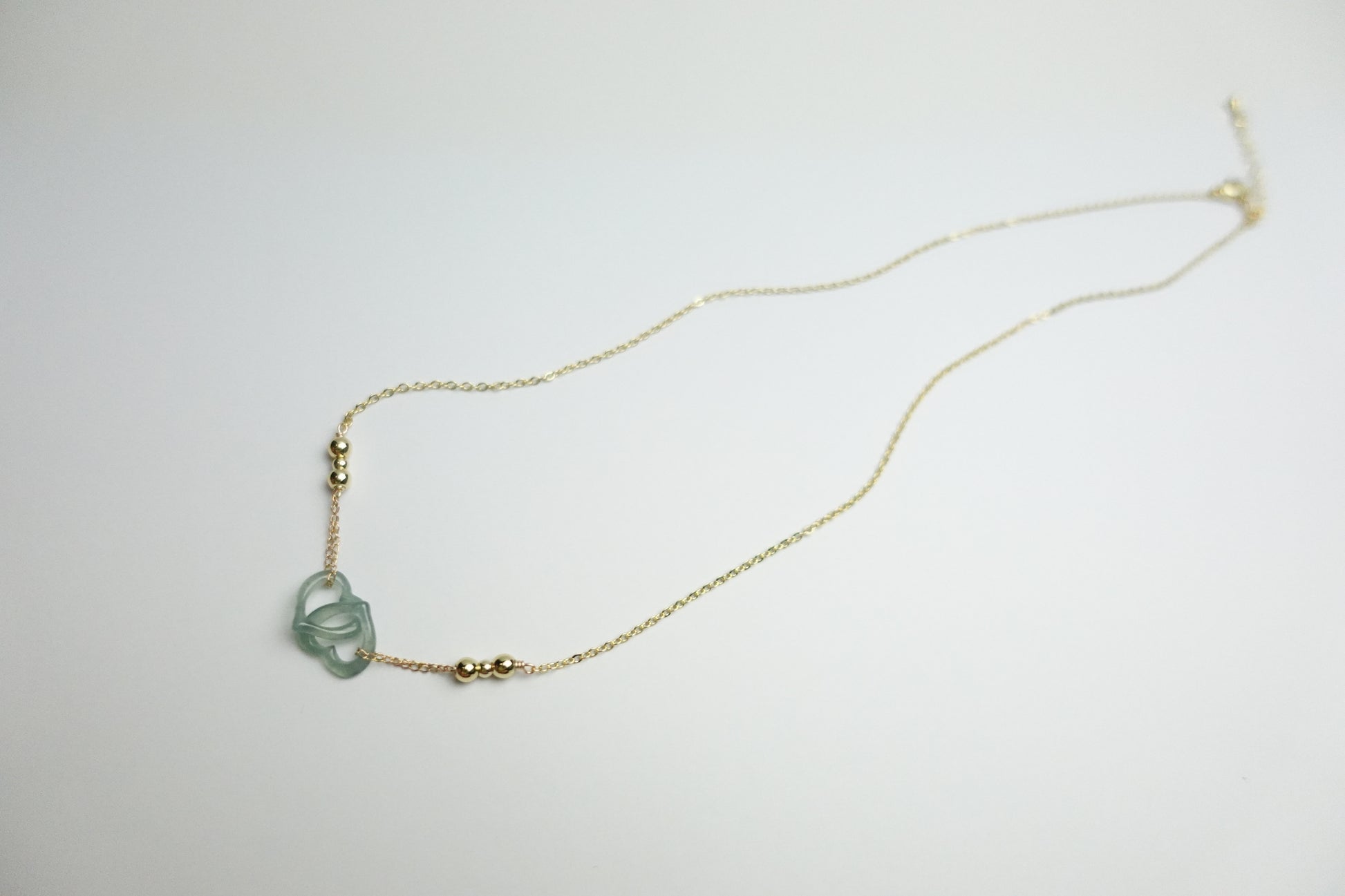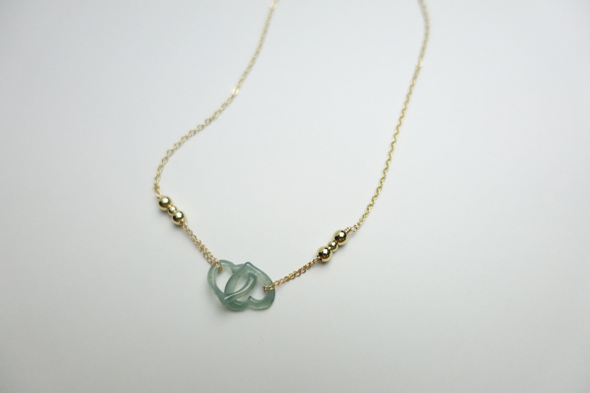 Meet the light Jade Lovers Tide Necklace, a striking symbol of unity and timeless style. Each interlocking piece is carved from one solid stone, creating a seamless connection that represents harmony and devotion. The deep green jade radiates strength and protection, while gold-filled accents add a lasting, tarnish-resistant glow.